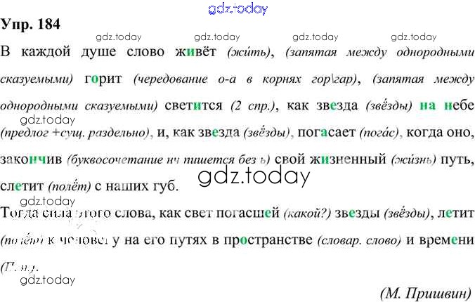 На страницах сайта gdz.today вы найдете учебный и вспомогательный материал, направленный на улучшения знаний школьной программы. ГДЗ - онлайн мир знаний Решение к упражнениям 184 Учебнику по Русскому языку для 6 класса Александрова, Загоровская Просвещение 2020