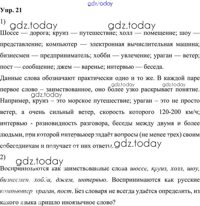 На страницах сайта gdz.today вы найдете учебный и вспомогательный материал, направленный на улучшения знаний школьной программы. ГДЗ - онлайн мир знаний Решение к упражнениям 21 Учебнику по Русскому языку для 6 класса Александрова, Загоровская Просвещение 2020