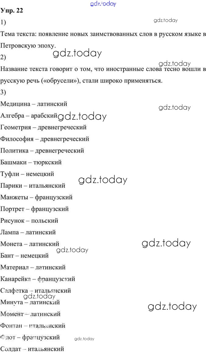 На страницах сайта gdz.today вы найдете учебный и вспомогательный материал, направленный на улучшения знаний школьной программы. ГДЗ - онлайн мир знаний Решение к упражнениям 22 Учебнику по Русскому языку для 6 класса Александрова, Загоровская Просвещение 2020