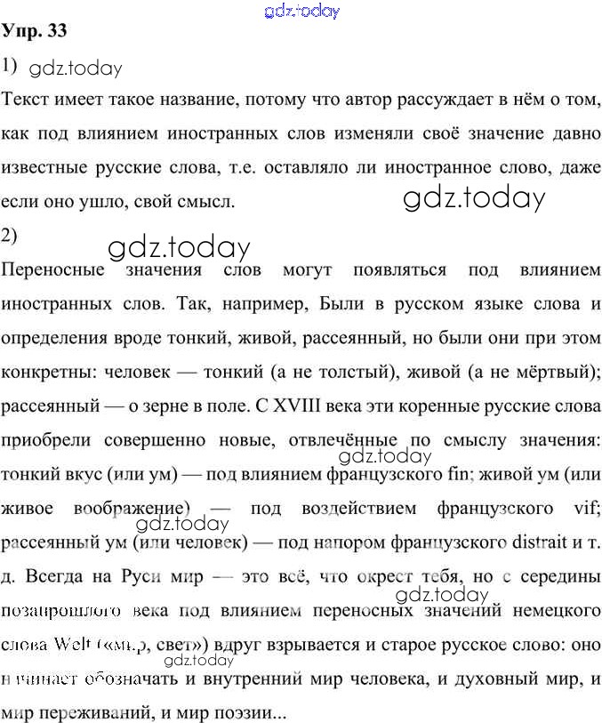 На страницах сайта gdz.today вы найдете учебный и вспомогательный материал, направленный на улучшения знаний школьной программы. ГДЗ - онлайн мир знаний Решение к упражнениям 33 Учебнику по Русскому языку для 6 класса Александрова, Загоровская Просвещение 2020