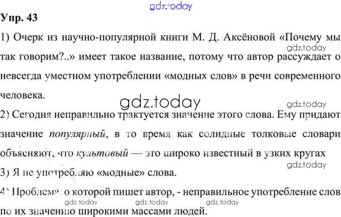 На страницах сайта gdz.today вы найдете учебный и вспомогательный материал, направленный на улучшения знаний школьной программы. ГДЗ - онлайн мир знаний Решение к упражнениям 43 Учебнику по Русскому языку для 6 класса Александрова, Загоровская Просвещение 2020