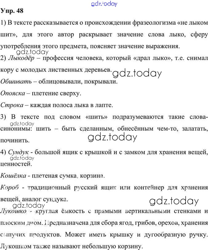 На страницах сайта gdz.today вы найдете учебный и вспомогательный материал, направленный на улучшения знаний школьной программы. ГДЗ - онлайн мир знаний Решение к упражнениям 48 Учебнику по Русскому языку для 6 класса Александрова, Загоровская Просвещение 2020