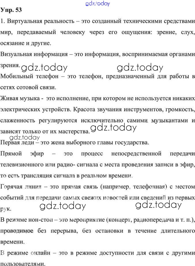 На страницах сайта gdz.today вы найдете учебный и вспомогательный материал, направленный на улучшения знаний школьной программы. ГДЗ - онлайн мир знаний Решение к упражнениям 53 Учебнику по Русскому языку для 6 класса Александрова, Загоровская Просвещение 2020