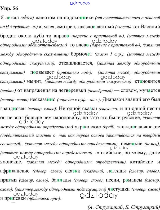На страницах сайта gdz.today вы найдете учебный и вспомогательный материал, направленный на улучшения знаний школьной программы. ГДЗ - онлайн мир знаний Решение к упражнениям 56 Учебнику по Русскому языку для 6 класса Александрова, Загоровская Просвещение 2020