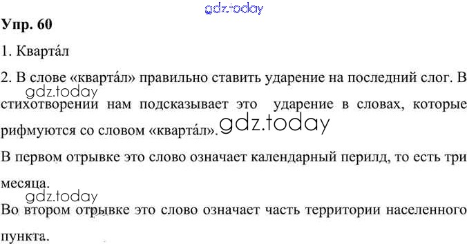 На страницах сайта gdz.today вы найдете учебный и вспомогательный материал, направленный на улучшения знаний школьной программы. ГДЗ - онлайн мир знаний Решение к упражнениям 60 Учебнику по Русскому языку для 6 класса Александрова, Загоровская Просвещение 2020