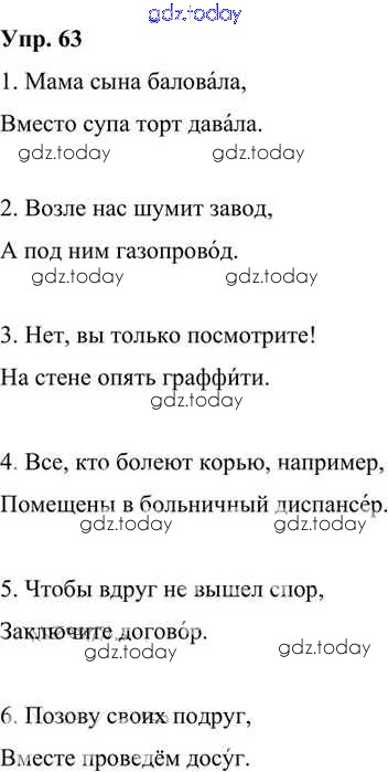 На страницах сайта gdz.today вы найдете учебный и вспомогательный материал, направленный на улучшения знаний школьной программы. ГДЗ - онлайн мир знаний Решение к упражнениям 63 Учебнику по Русскому языку для 6 класса Александрова, Загоровская Просвещение 2020