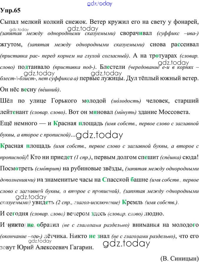 На страницах сайта gdz.today вы найдете учебный и вспомогательный материал, направленный на улучшения знаний школьной программы. ГДЗ - онлайн мир знаний Решение к упражнениям 65 Учебнику по Русскому языку для 6 класса Александрова, Загоровская Просвещение 2020