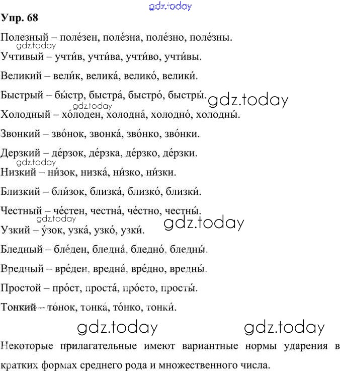 На страницах сайта gdz.today вы найдете учебный и вспомогательный материал, направленный на улучшения знаний школьной программы. ГДЗ - онлайн мир знаний Решение к упражнениям 68 Учебнику по Русскому языку для 6 класса Александрова, Загоровская Просвещение 2020