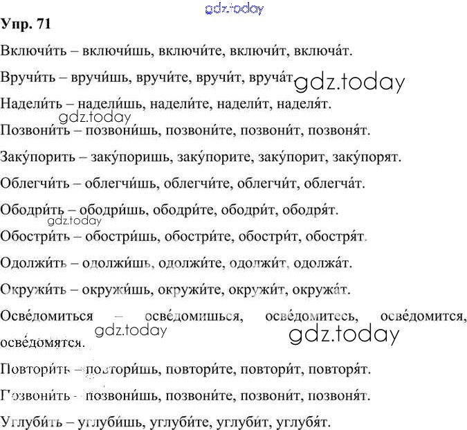 На страницах сайта gdz.today вы найдете учебный и вспомогательный материал, направленный на улучшения знаний школьной программы. ГДЗ - онлайн мир знаний Решение к упражнениям 71 Учебнику по Русскому языку для 6 класса Александрова, Загоровская Просвещение 2020