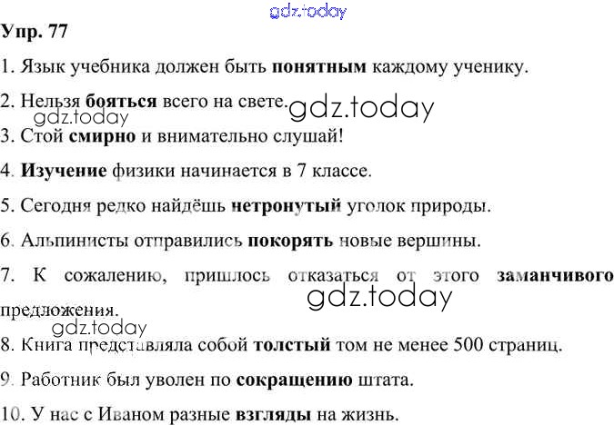 На страницах сайта gdz.today вы найдете учебный и вспомогательный материал, направленный на улучшения знаний школьной программы. ГДЗ - онлайн мир знаний Решение к упражнениям 77 Учебнику по Русскому языку для 6 класса Александрова, Загоровская Просвещение 2020