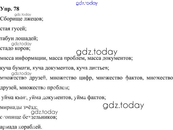 На страницах сайта gdz.today вы найдете учебный и вспомогательный материал, направленный на улучшения знаний школьной программы. ГДЗ - онлайн мир знаний Решение к упражнениям 78 Учебнику по Русскому языку для 6 класса Александрова, Загоровская Просвещение 2020