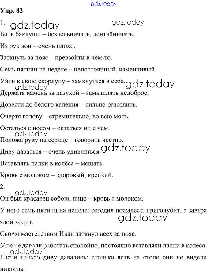 На страницах сайта gdz.today вы найдете учебный и вспомогательный материал, направленный на улучшения знаний школьной программы. ГДЗ - онлайн мир знаний Решение к упражнениям 82 Учебнику по Русскому языку для 6 класса Александрова, Загоровская Просвещение 2020