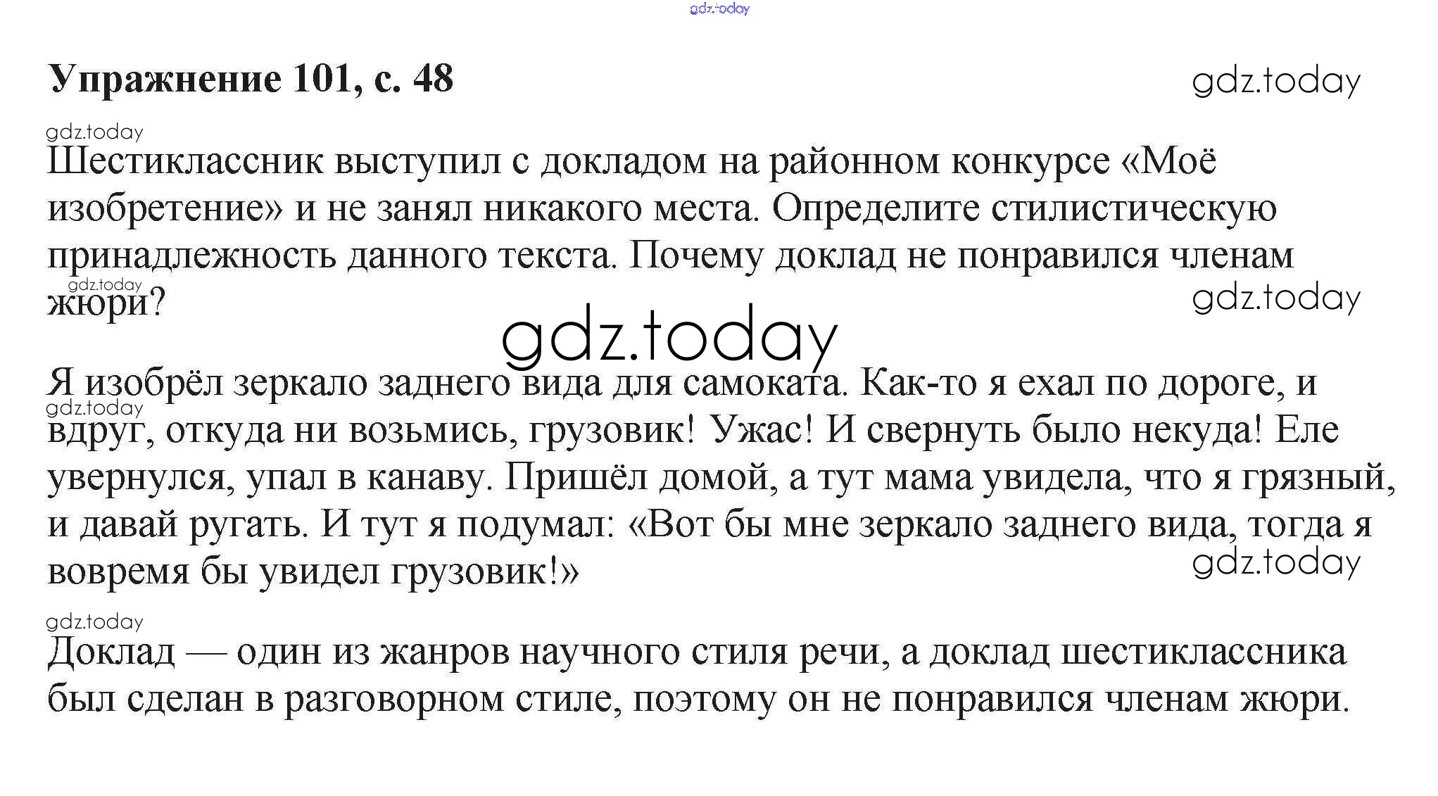 На страницах сайта gdz.today вы найдете учебный и вспомогательный материал, направленный на улучшения знаний школьной программы. ГДЗ - онлайн мир знаний Упражнения Часть 1 101 Учебнику по Русскому языку для 6 класса Баранов, Ладыженская Просвещение, Просвещение 2015, 2022