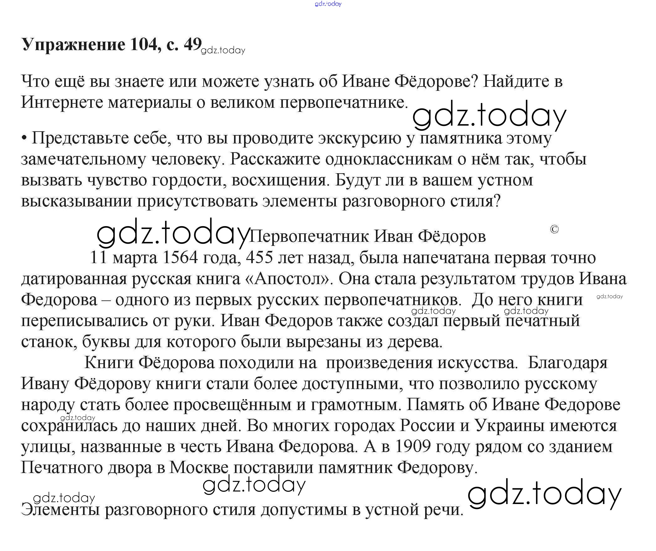 Ответы к Упражнения Часть 1 104 Учебнику по Русскому языку для 6 класса Баранов, Ладыженская Просвещение, Просвещение 2015, 2022