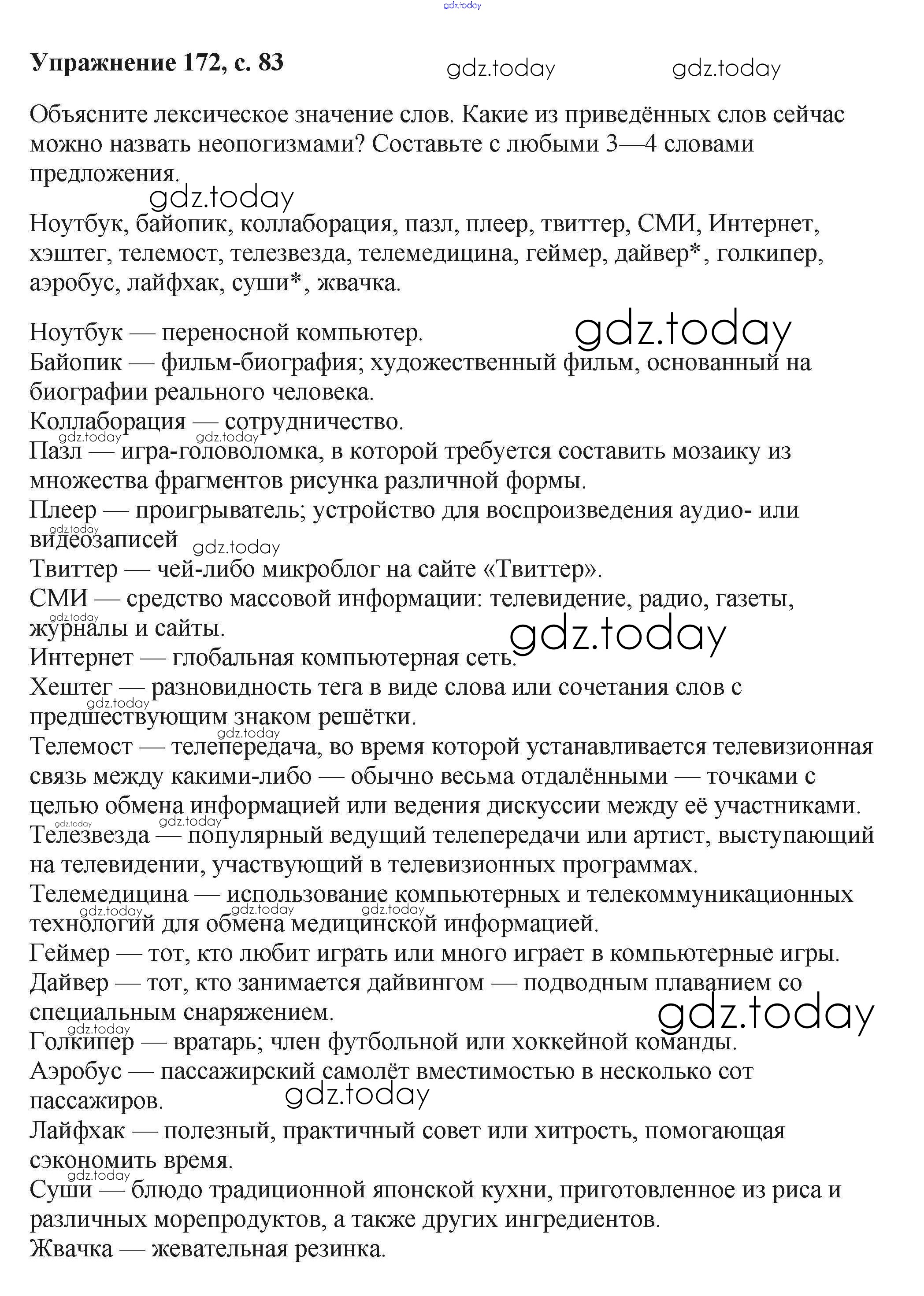Ответы к Упражнения Часть 1 172 Учебнику по Русскому языку для 6 класса Баранов, Ладыженская Просвещение, Просвещение 2015, 2022