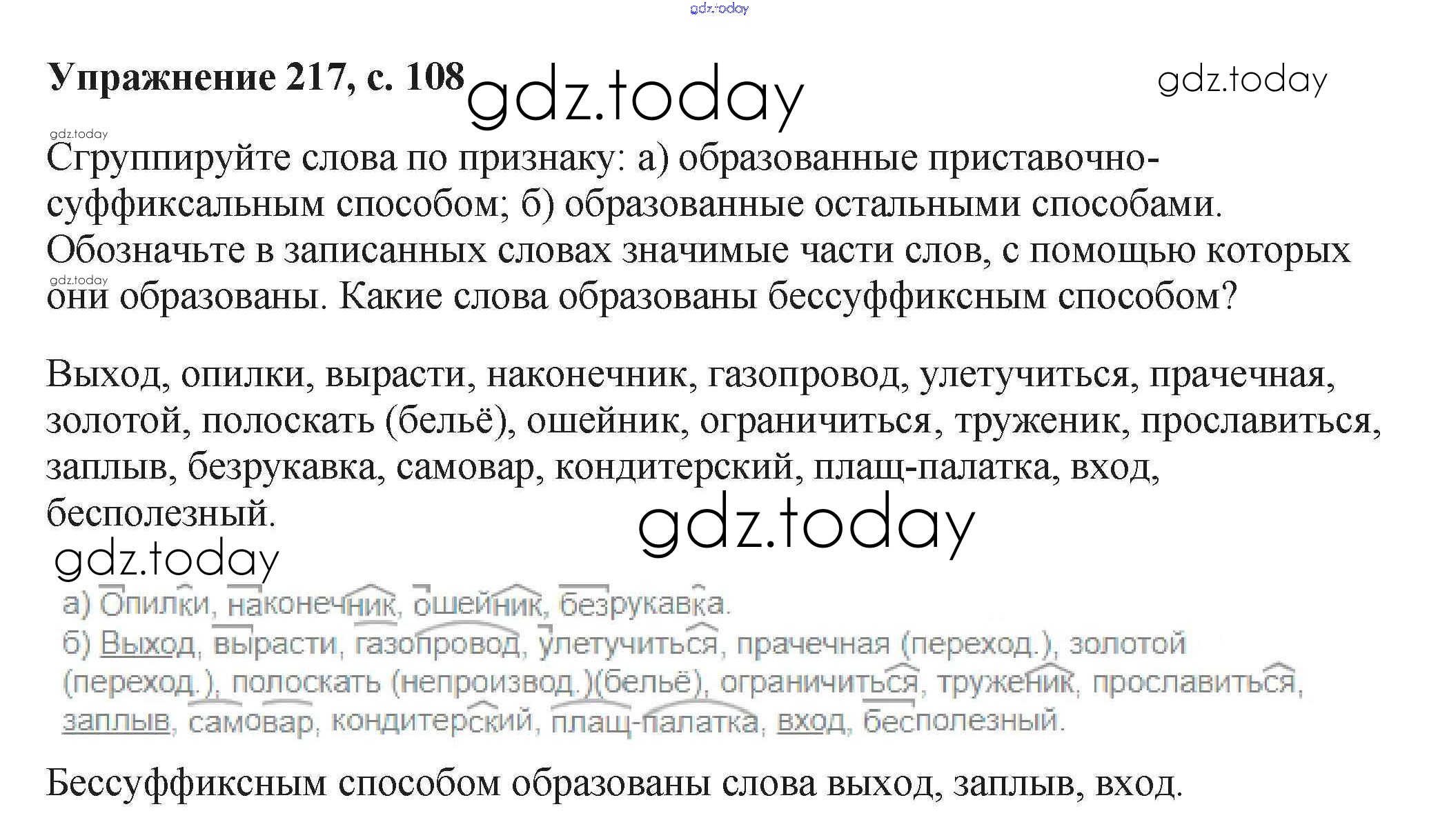 На страницах сайта gdz.today вы найдете учебный и вспомогательный материал, направленный на улучшения знаний школьной программы. ГДЗ - онлайн мир знаний Упражнения Часть 1 217 Учебнику по Русскому языку для 6 класса Баранов, Ладыженская Просвещение, Просвещение 2015, 2022