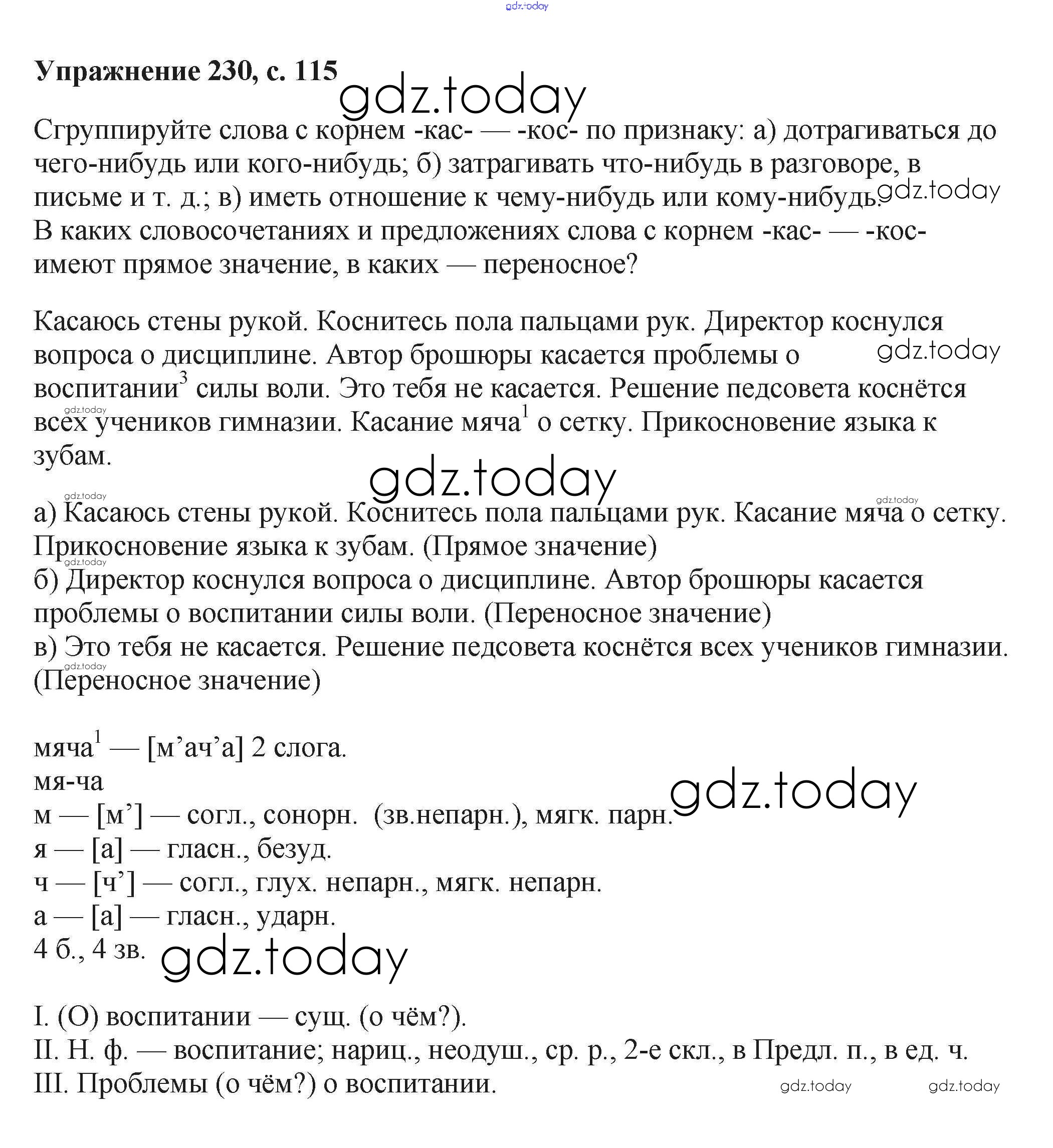 На страницах сайта gdz.today вы найдете учебный и вспомогательный материал, направленный на улучшения знаний школьной программы. ГДЗ - онлайн мир знаний Упражнения Часть 1 230 Учебнику по Русскому языку для 6 класса Баранов, Ладыженская Просвещение, Просвещение 2015, 2022