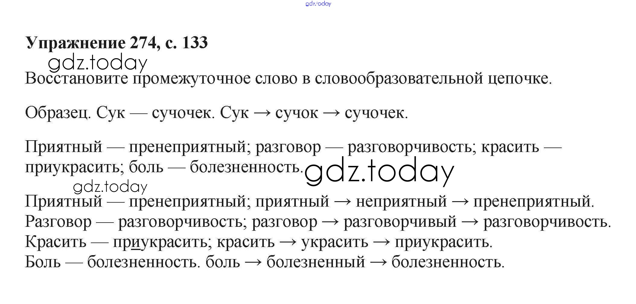 Ответы к Упражнения Часть 1 274 Учебнику по Русскому языку для 6 класса Баранов, Ладыженская Просвещение, Просвещение 2015, 2022