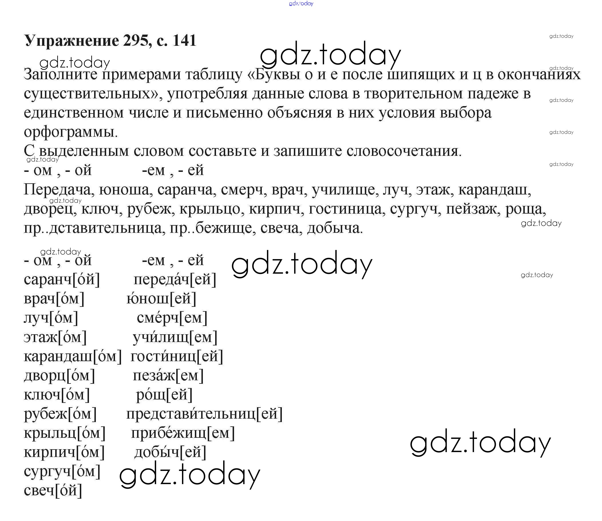 На страницах сайта gdz.today вы найдете учебный и вспомогательный материал, направленный на улучшения знаний школьной программы. ГДЗ - онлайн мир знаний Упражнения Часть 1 295 Учебнику по Русскому языку для 6 класса Баранов, Ладыженская Просвещение, Просвещение 2015, 2022