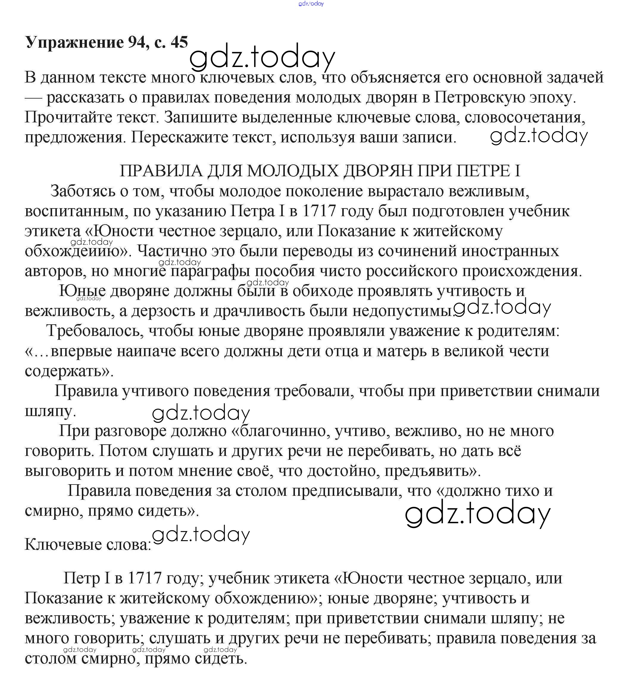 На страницах сайта gdz.today вы найдете учебный и вспомогательный материал, направленный на улучшения знаний школьной программы. ГДЗ - онлайн мир знаний Упражнения Часть 1 94 Учебнику по Русскому языку для 6 класса Баранов, Ладыженская Просвещение, Просвещение 2015, 2022
