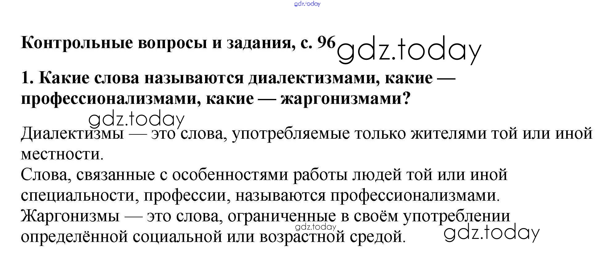 Ответы к Страница 96 Контрольные вопросы и задания 1 Учебнику по Русскому языку для 6 класса Баранов, Ладыженская Просвещение, Просвещение 2015, 2022