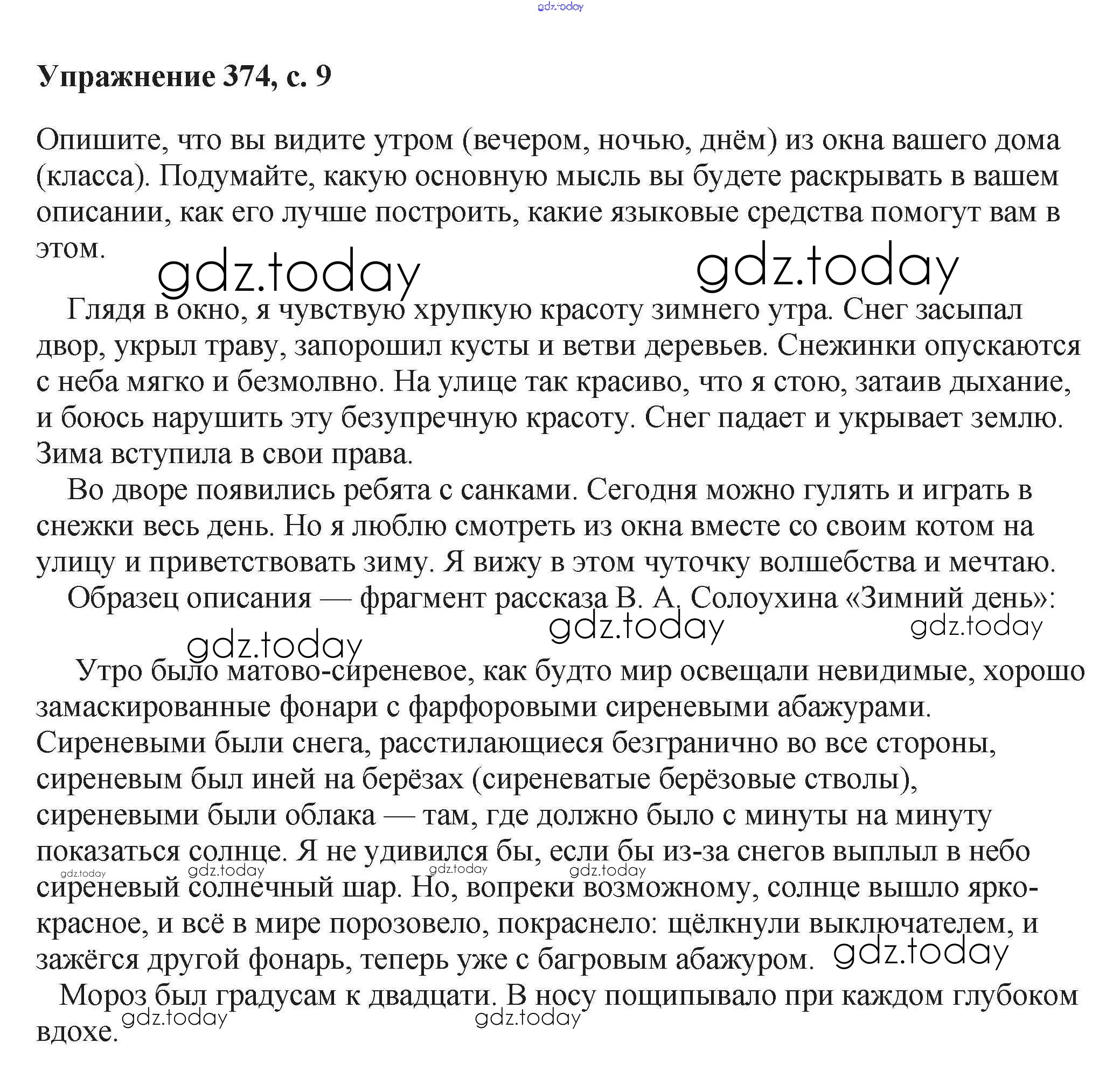 На страницах сайта gdz.today вы найдете учебный и вспомогательный материал, направленный на улучшения знаний школьной программы. ГДЗ - онлайн мир знаний Упражнения Часть 2 374 Учебнику по Русскому языку для 6 класса Баранов, Ладыженская Просвещение, Просвещение 2015, 2022