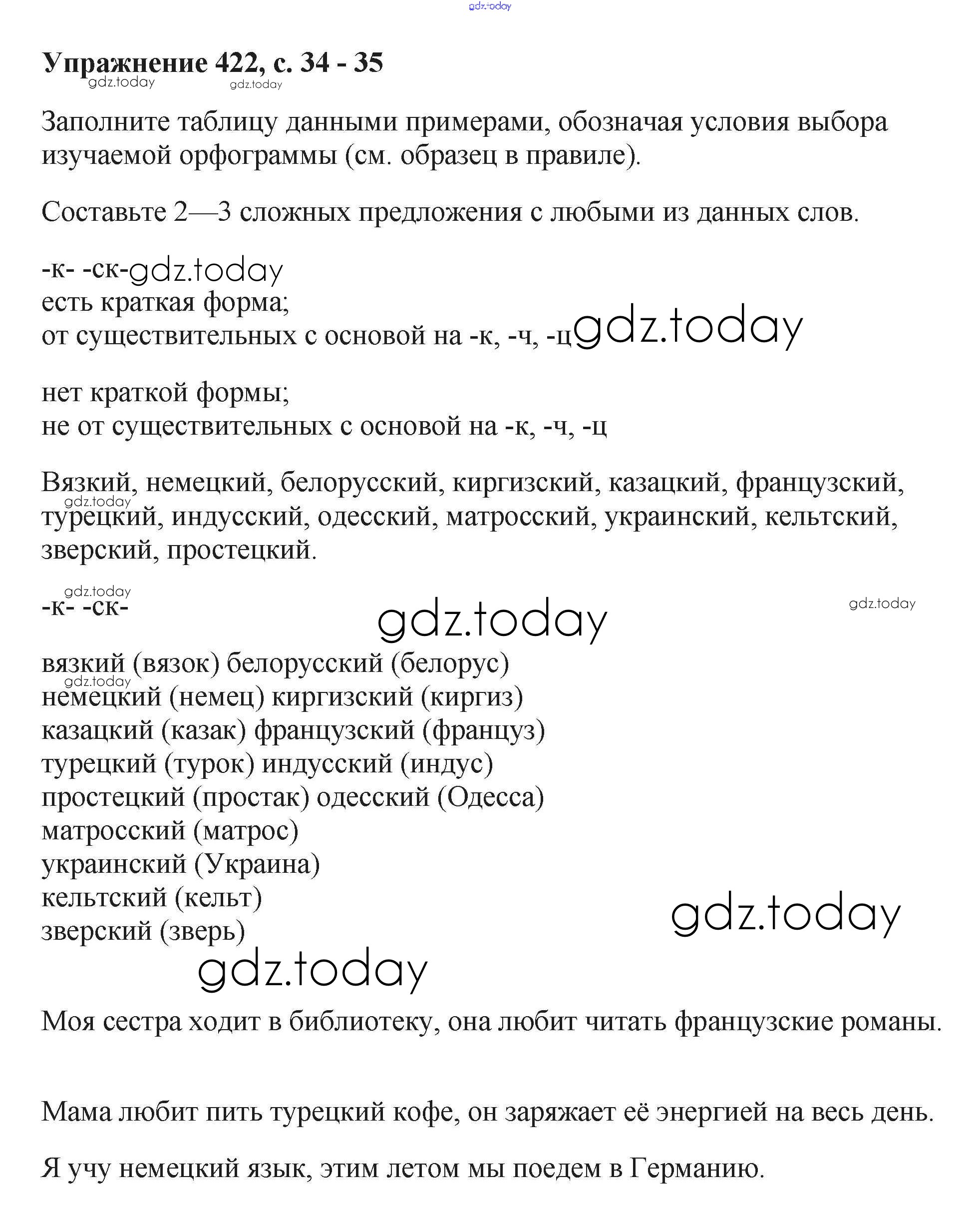 На страницах сайта gdz.today вы найдете учебный и вспомогательный материал, направленный на улучшения знаний школьной программы. ГДЗ - онлайн мир знаний Упражнения Часть 2 422 Учебнику по Русскому языку для 6 класса Баранов, Ладыженская Просвещение, Просвещение 2015, 2022
