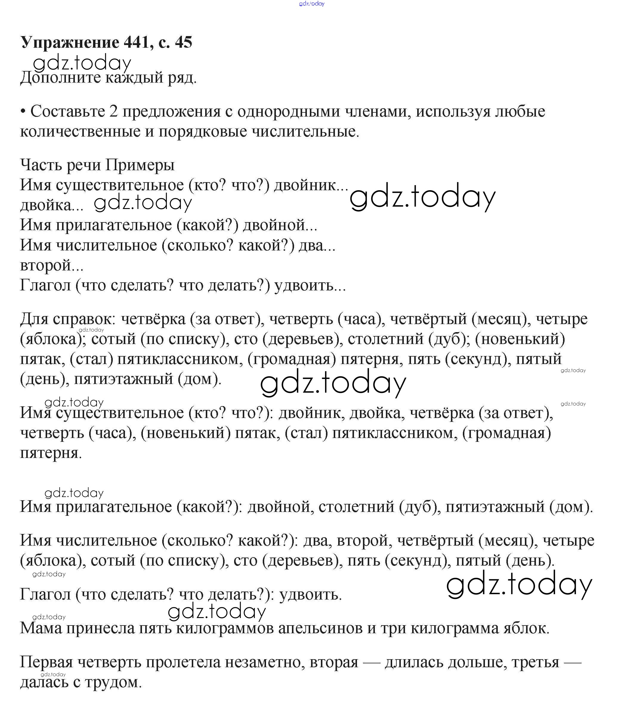 На страницах сайта gdz.today вы найдете учебный и вспомогательный материал, направленный на улучшения знаний школьной программы. ГДЗ - онлайн мир знаний Упражнения Часть 2 441 Учебнику по Русскому языку для 6 класса Баранов, Ладыженская Просвещение, Просвещение 2015, 2022