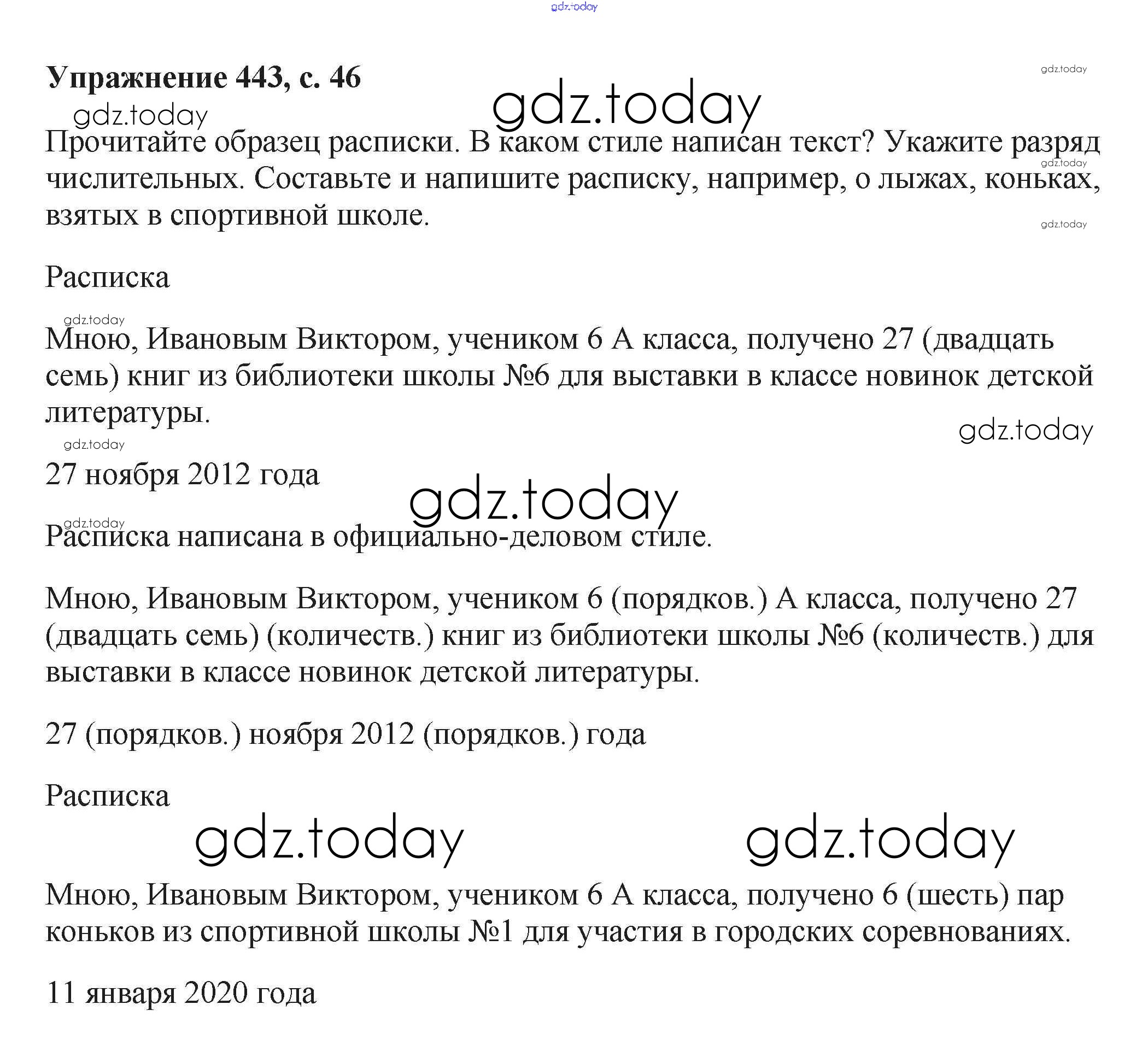 На страницах сайта gdz.today вы найдете учебный и вспомогательный материал, направленный на улучшения знаний школьной программы. ГДЗ - онлайн мир знаний Упражнения Часть 2 443 Учебнику по Русскому языку для 6 класса Баранов, Ладыженская Просвещение, Просвещение 2015, 2022