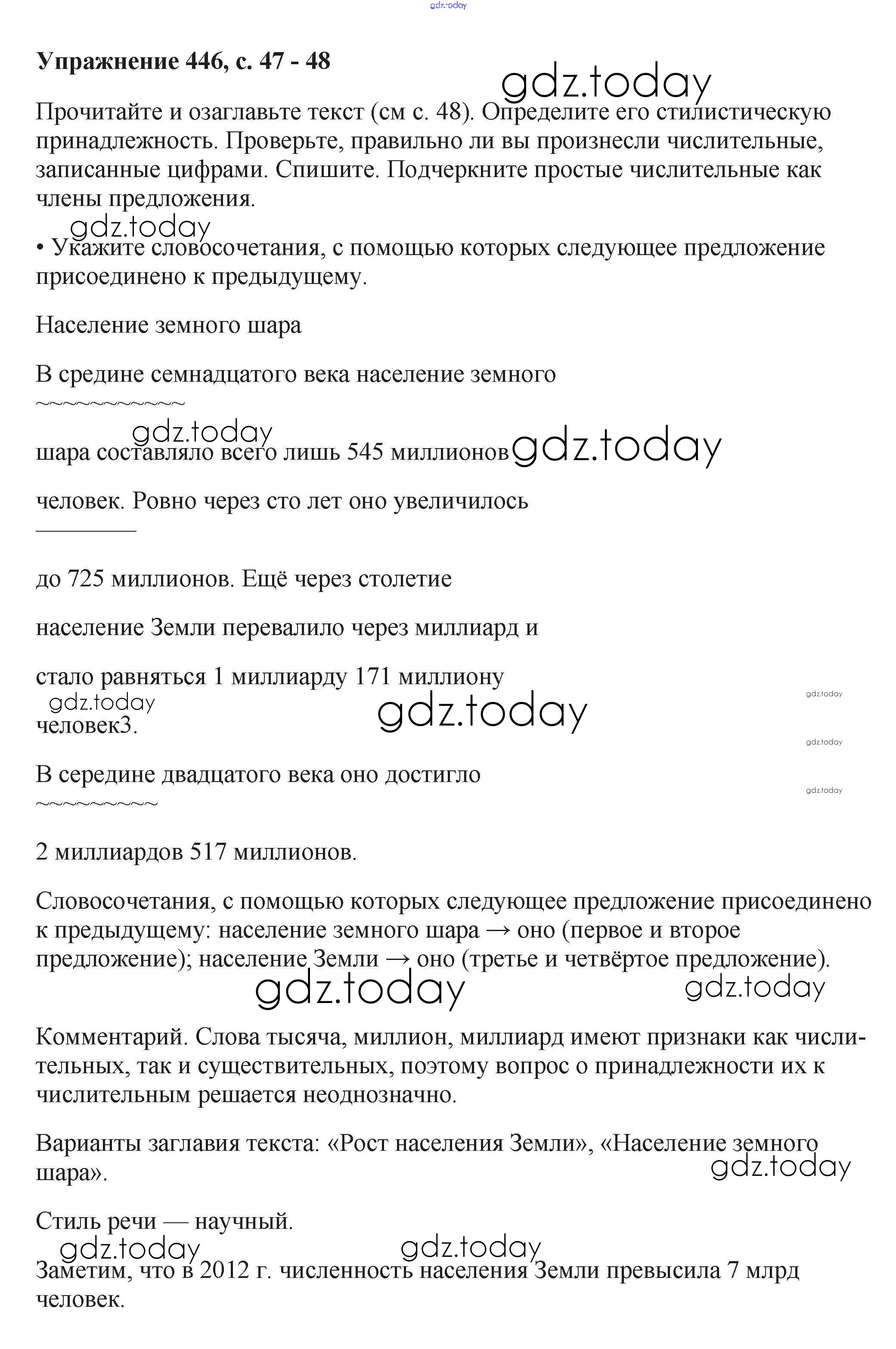 На страницах сайта gdz.today вы найдете учебный и вспомогательный материал, направленный на улучшения знаний школьной программы. ГДЗ - онлайн мир знаний Упражнения Часть 2 446 Учебнику по Русскому языку для 6 класса Баранов, Ладыженская Просвещение, Просвещение 2015, 2022