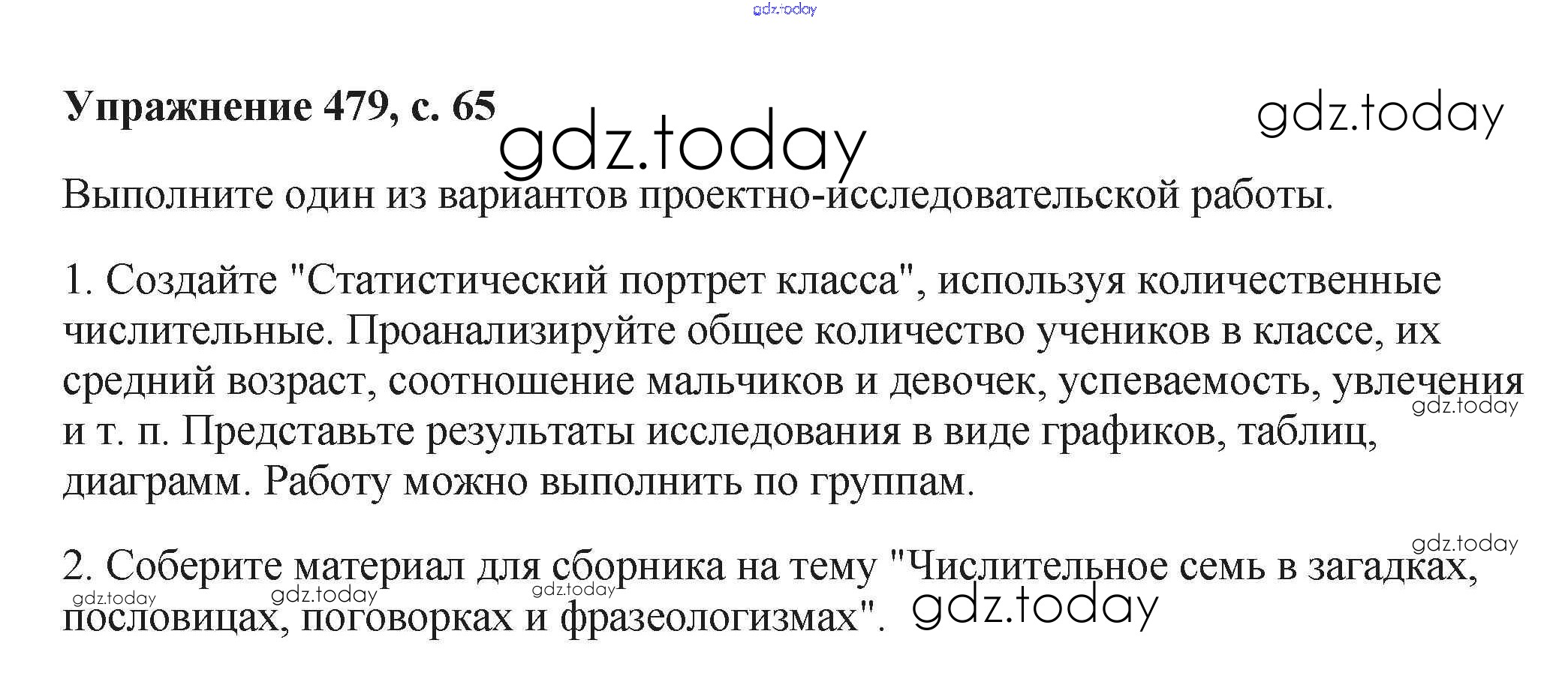 На страницах сайта gdz.today вы найдете учебный и вспомогательный материал, направленный на улучшения знаний школьной программы. ГДЗ - онлайн мир знаний Упражнения Часть 2 479 Учебнику по Русскому языку для 6 класса Баранов, Ладыженская Просвещение, Просвещение 2015, 2022