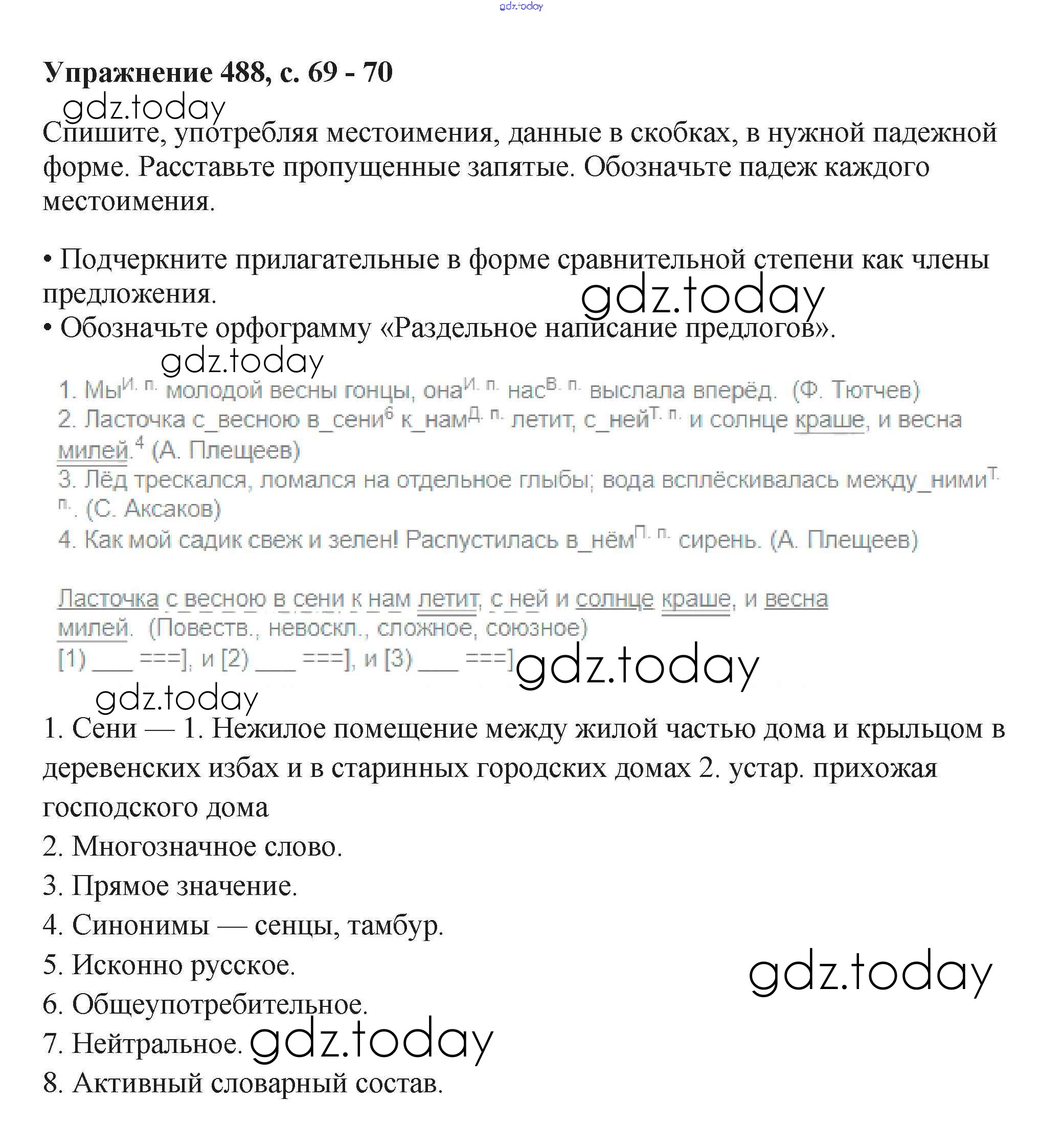 На страницах сайта gdz.today вы найдете учебный и вспомогательный материал, направленный на улучшения знаний школьной программы. ГДЗ - онлайн мир знаний Упражнения Часть 2 488 Учебнику по Русскому языку для 6 класса Баранов, Ладыженская Просвещение, Просвещение 2015, 2022