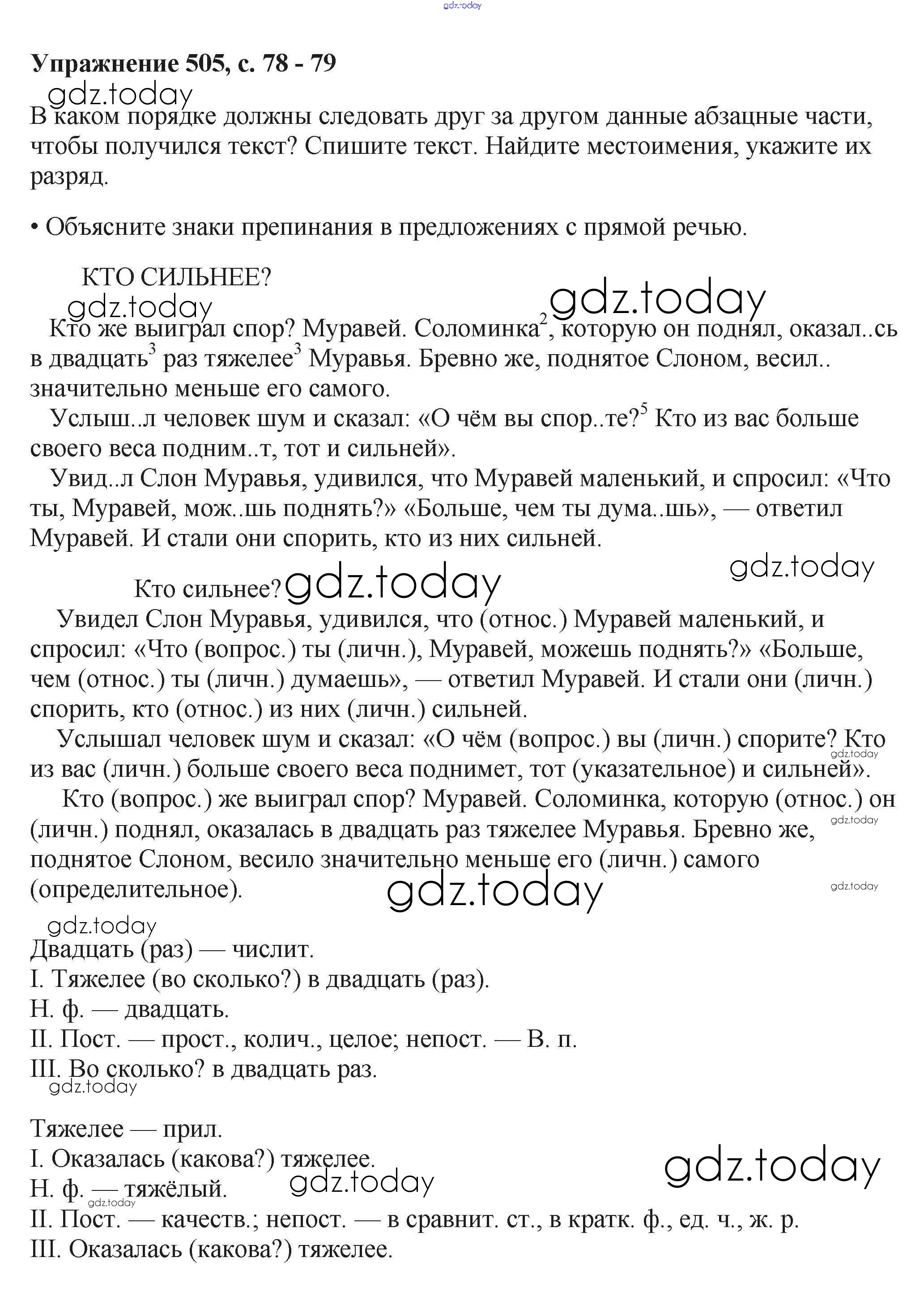 На страницах сайта gdz.today вы найдете учебный и вспомогательный материал, направленный на улучшения знаний школьной программы. ГДЗ - онлайн мир знаний Упражнения Часть 2 505 Учебнику по Русскому языку для 6 класса Баранов, Ладыженская Просвещение, Просвещение 2015, 2022
