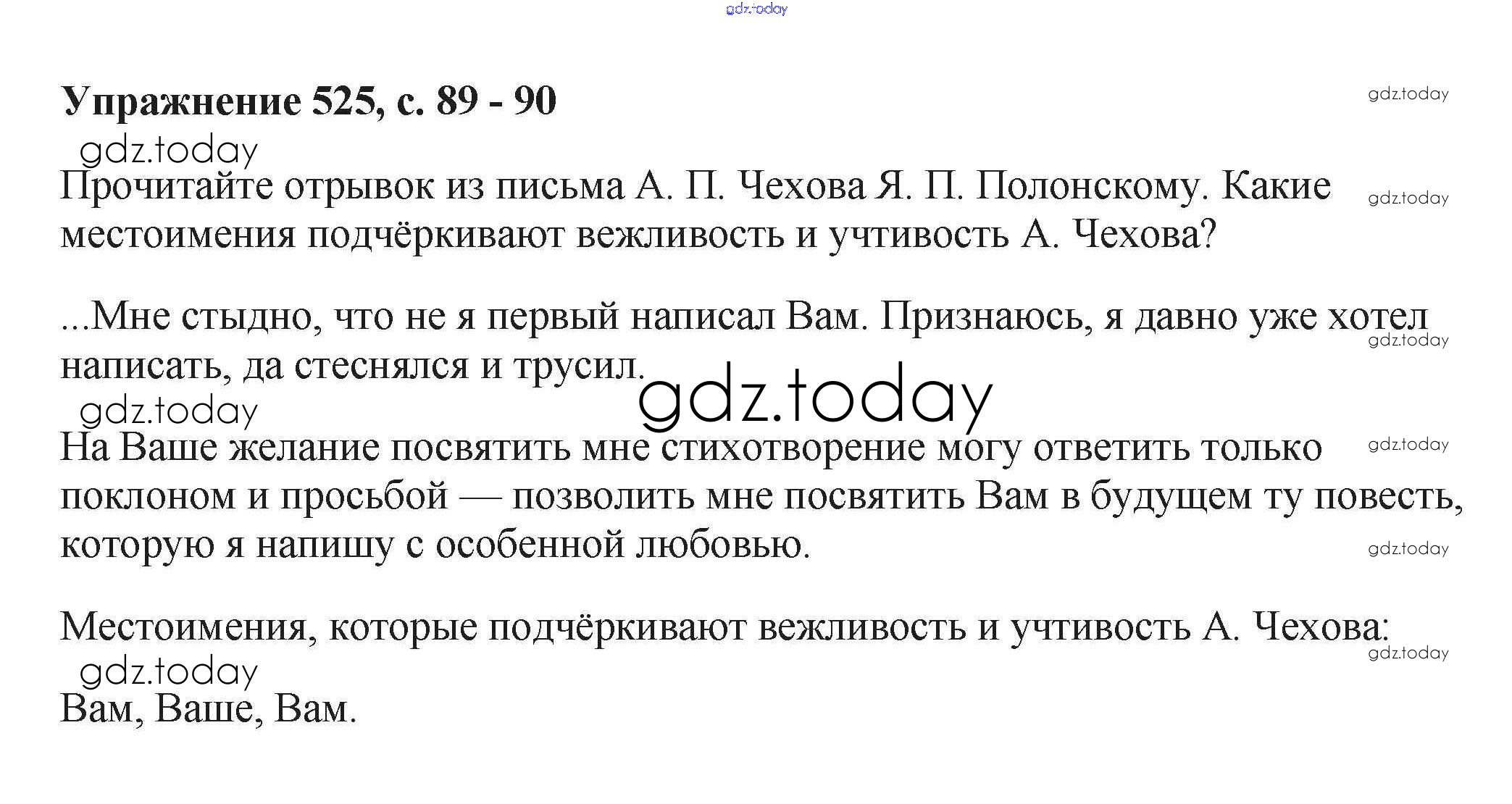 На страницах сайта gdz.today вы найдете учебный и вспомогательный материал, направленный на улучшения знаний школьной программы. ГДЗ - онлайн мир знаний Упражнения Часть 2 525 Учебнику по Русскому языку для 6 класса Баранов, Ладыженская Просвещение, Просвещение 2015, 2022