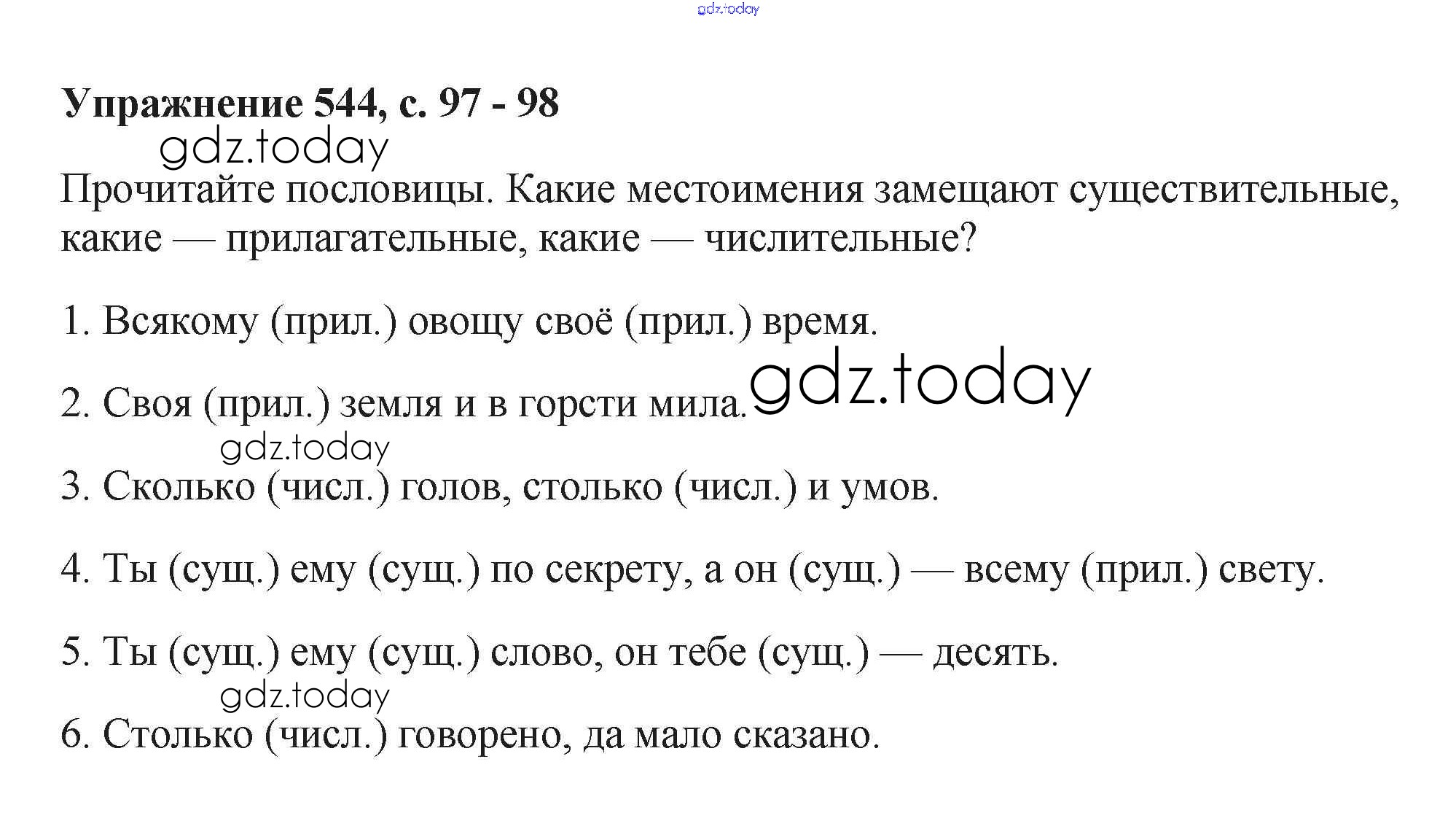 На страницах сайта gdz.today вы найдете учебный и вспомогательный материал, направленный на улучшения знаний школьной программы. ГДЗ - онлайн мир знаний Упражнения Часть 2 544 Учебнику по Русскому языку для 6 класса Баранов, Ладыженская Просвещение, Просвещение 2015, 2022