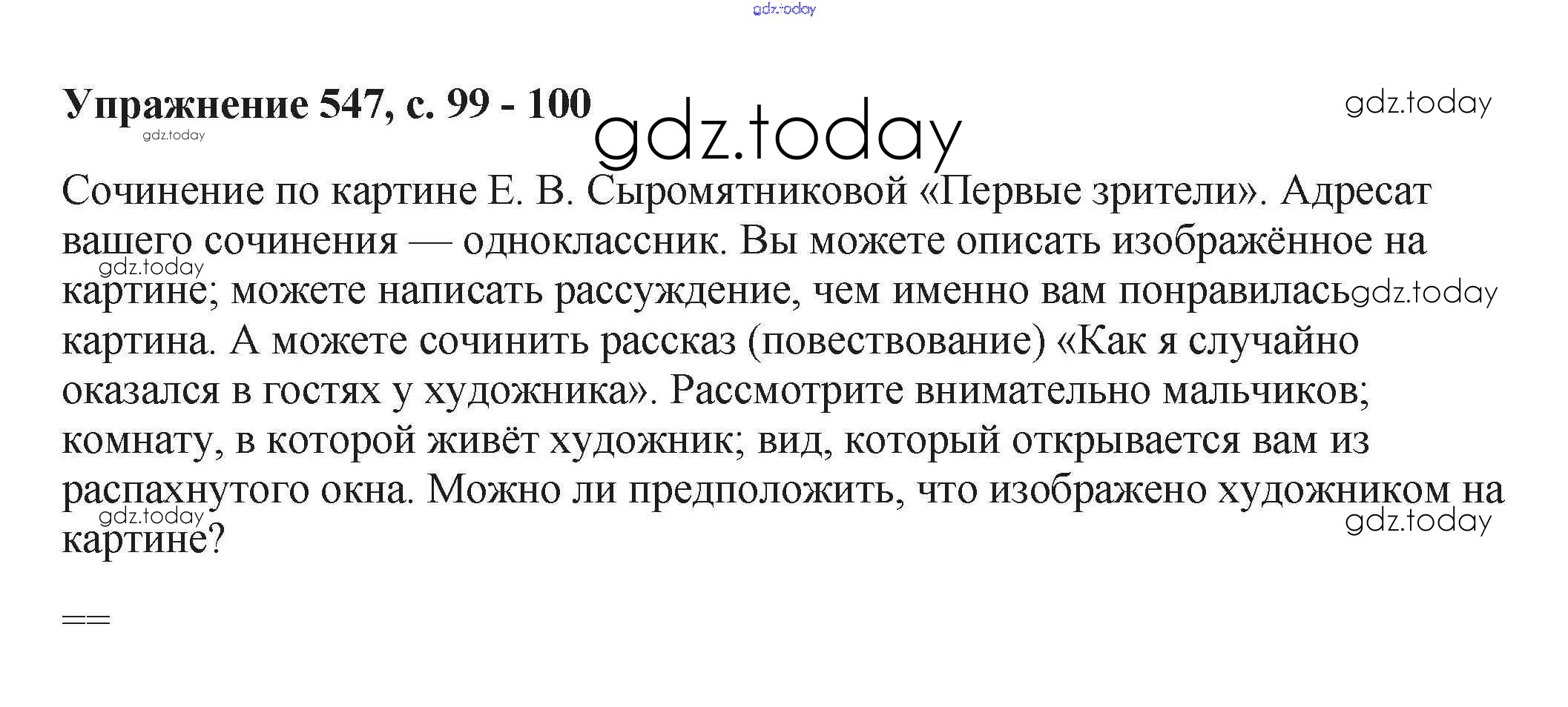 На страницах сайта gdz.today вы найдете учебный и вспомогательный материал, направленный на улучшения знаний школьной программы. ГДЗ - онлайн мир знаний Упражнения Часть 2 547 Учебнику по Русскому языку для 6 класса Баранов, Ладыженская Просвещение, Просвещение 2015, 2022