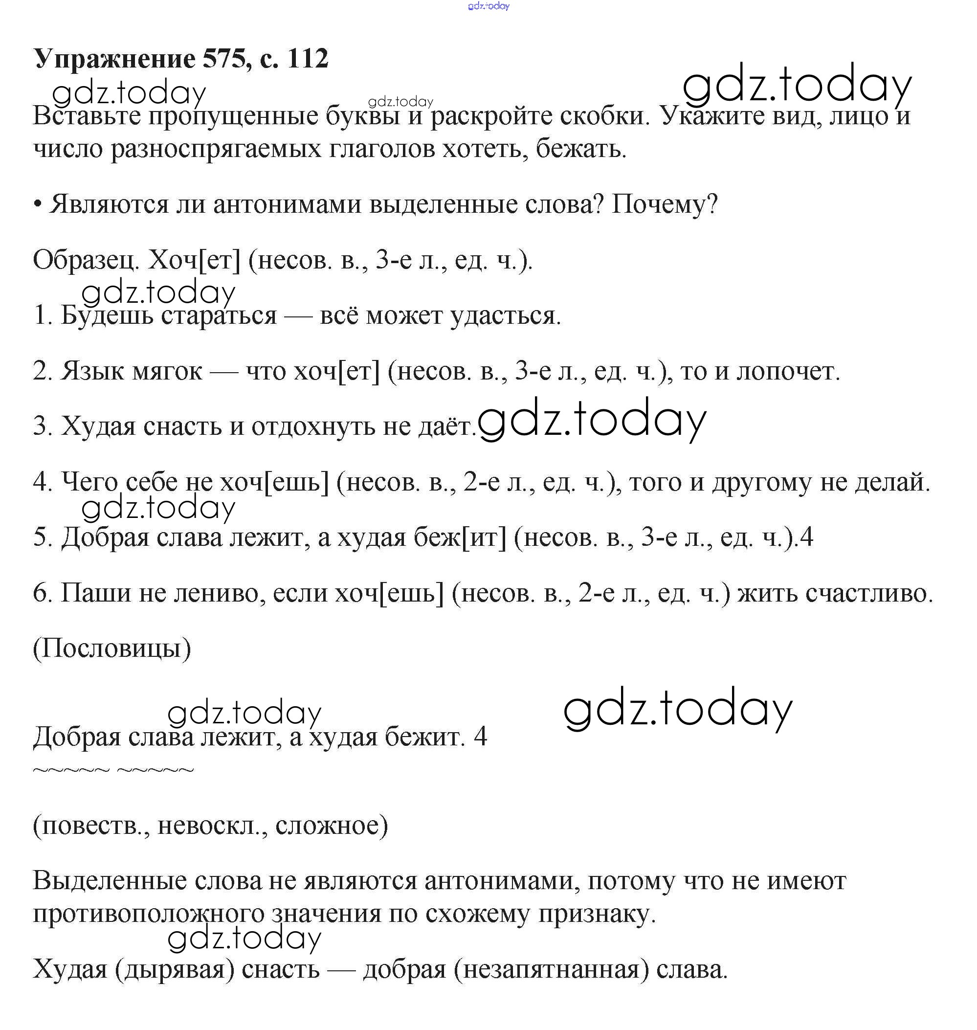 На страницах сайта gdz.today вы найдете учебный и вспомогательный материал, направленный на улучшения знаний школьной программы. ГДЗ - онлайн мир знаний Упражнения Часть 2 575 Учебнику по Русскому языку для 6 класса Баранов, Ладыженская Просвещение, Просвещение 2015, 2022