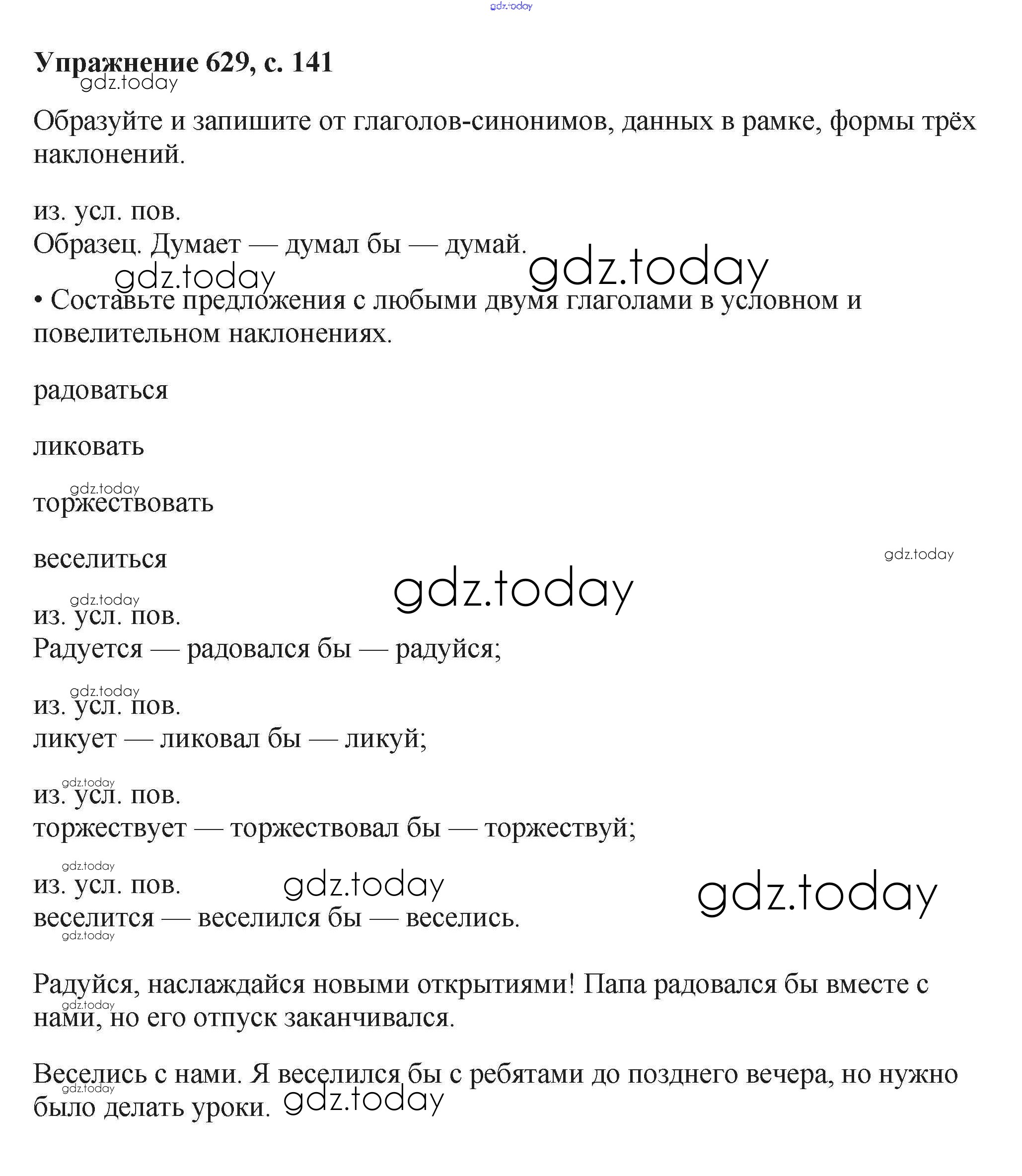 На страницах сайта gdz.today вы найдете учебный и вспомогательный материал, направленный на улучшения знаний школьной программы. ГДЗ - онлайн мир знаний Упражнения Часть 2 629 Учебнику по Русскому языку для 6 класса Баранов, Ладыженская Просвещение, Просвещение 2015, 2022