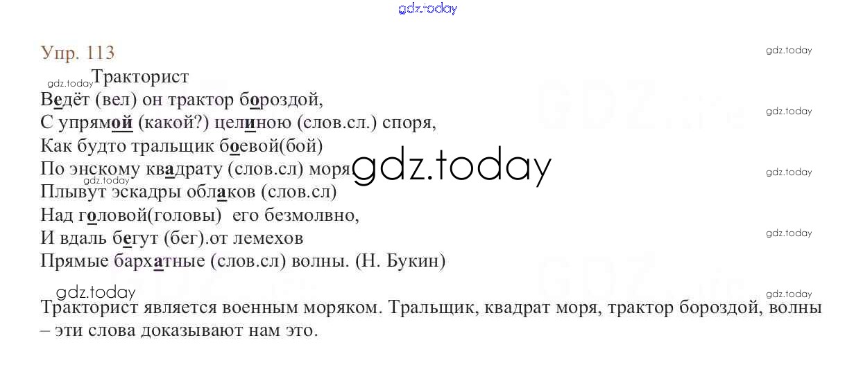 На страницах сайта gdz.today вы найдете учебный и вспомогательный материал, направленный на улучшения знаний школьной программы. ГДЗ - онлайн мир знаний Упражнения Часть 1 113 Учебнику по Русскому языку для 6 класса Баранов, Ладыженская Просвещение, Просвещение 2015, 2022