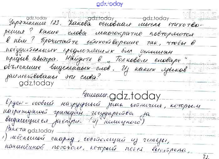 На страницах сайта gdz.today вы найдете учебный и вспомогательный материал, направленный на улучшения знаний школьной программы. ГДЗ - онлайн мир знаний Упражнения Часть 1 123 Учебнику по Русскому языку для 6 класса Баранов, Ладыженская Просвещение, Просвещение 2015, 2022