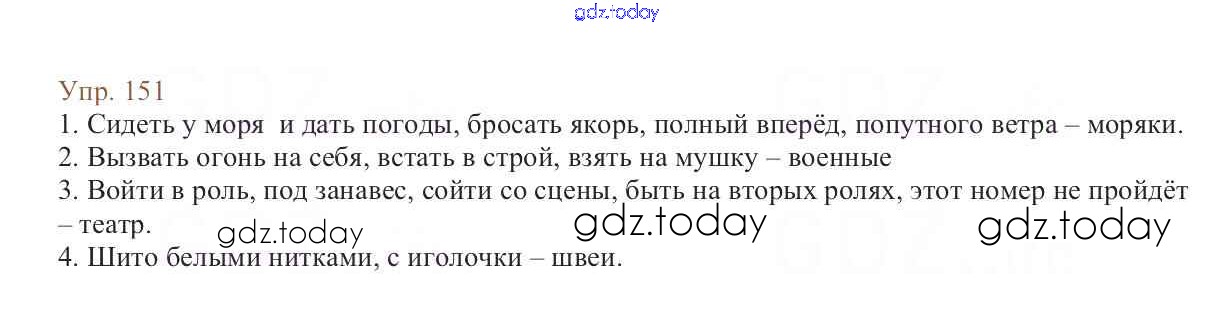На страницах сайта gdz.today вы найдете учебный и вспомогательный материал, направленный на улучшения знаний школьной программы. ГДЗ - онлайн мир знаний Упражнения Часть 1 151 Учебнику по Русскому языку для 6 класса Баранов, Ладыженская Просвещение, Просвещение 2015, 2022