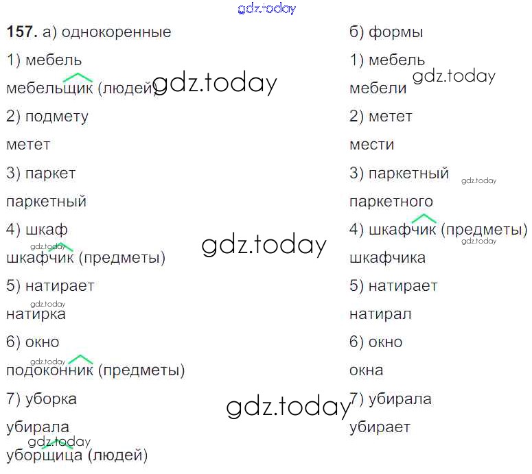 На страницах сайта gdz.today вы найдете учебный и вспомогательный материал, направленный на улучшения знаний школьной программы. ГДЗ - онлайн мир знаний Упражнения Часть 1 157 Учебнику по Русскому языку для 6 класса Баранов, Ладыженская Просвещение, Просвещение 2015, 2022