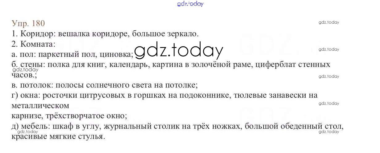 На страницах сайта gdz.today вы найдете учебный и вспомогательный материал, направленный на улучшения знаний школьной программы. ГДЗ - онлайн мир знаний Упражнения Часть 1 180 Учебнику по Русскому языку для 6 класса Баранов, Ладыженская Просвещение, Просвещение 2015, 2022