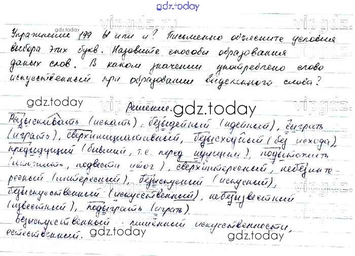 На страницах сайта gdz.today вы найдете учебный и вспомогательный материал, направленный на улучшения знаний школьной программы. ГДЗ - онлайн мир знаний Упражнения Часть 1 199 Учебнику по Русскому языку для 6 класса Баранов, Ладыженская Просвещение, Просвещение 2015, 2022