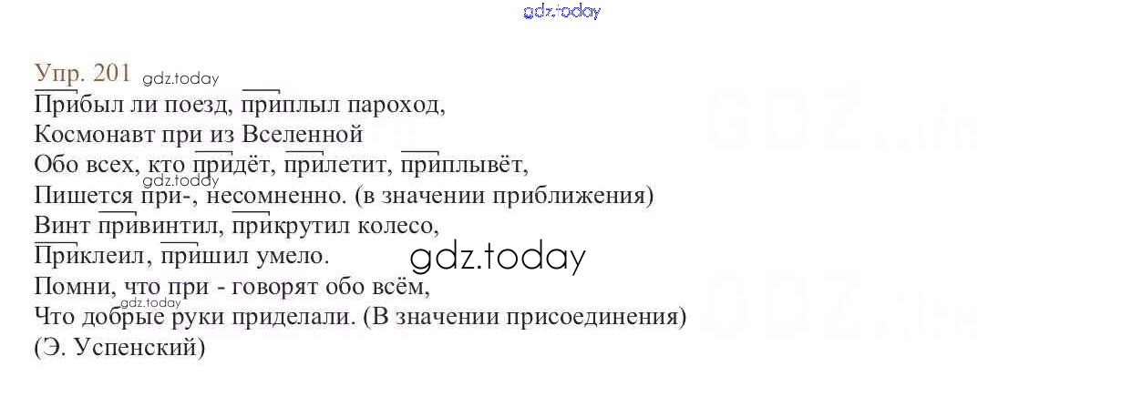 На страницах сайта gdz.today вы найдете учебный и вспомогательный материал, направленный на улучшения знаний школьной программы. ГДЗ - онлайн мир знаний Упражнения Часть 1 201 Учебнику по Русскому языку для 6 класса Баранов, Ладыженская Просвещение, Просвещение 2015, 2022