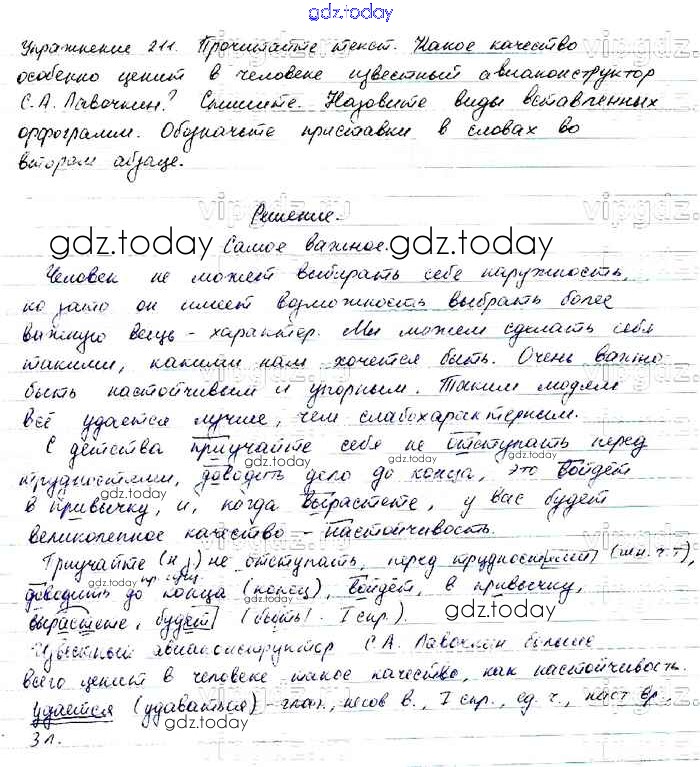 На страницах сайта gdz.today вы найдете учебный и вспомогательный материал, направленный на улучшения знаний школьной программы. ГДЗ - онлайн мир знаний Упражнения Часть 1 211 Учебнику по Русскому языку для 6 класса Баранов, Ладыженская Просвещение, Просвещение 2015, 2022