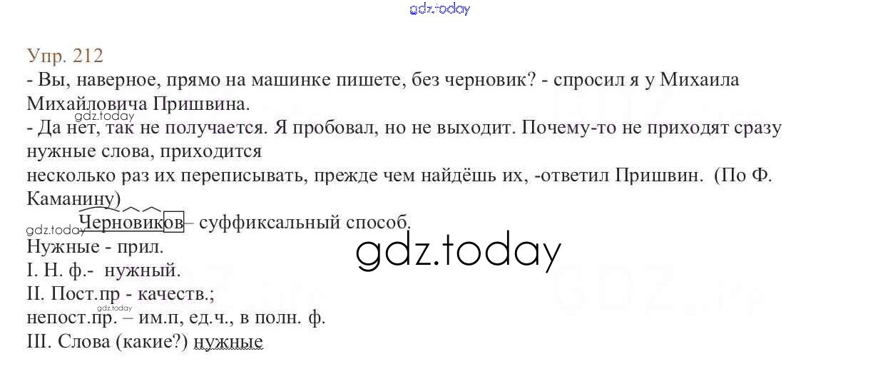 На страницах сайта gdz.today вы найдете учебный и вспомогательный материал, направленный на улучшения знаний школьной программы. ГДЗ - онлайн мир знаний Упражнения Часть 1 212 Учебнику по Русскому языку для 6 класса Баранов, Ладыженская Просвещение, Просвещение 2015, 2022