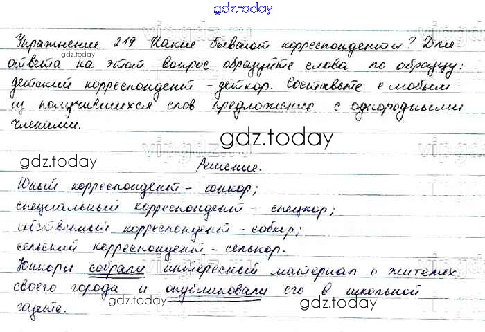 На страницах сайта gdz.today вы найдете учебный и вспомогательный материал, направленный на улучшения знаний школьной программы. ГДЗ - онлайн мир знаний Упражнения Часть 1 219 Учебнику по Русскому языку для 6 класса Баранов, Ладыженская Просвещение, Просвещение 2015, 2022