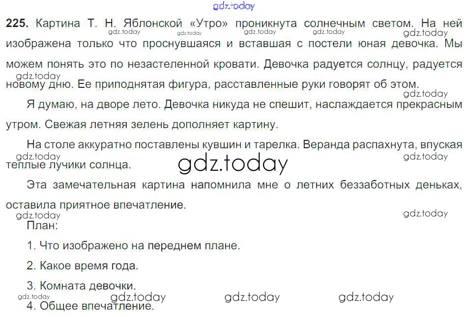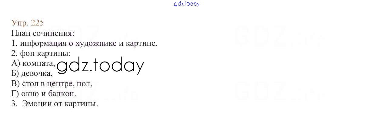 На страницах сайта gdz.today вы найдете учебный и вспомогательный материал, направленный на улучшения знаний школьной программы. ГДЗ - онлайн мир знаний Упражнения Часть 1 225 Учебнику по Русскому языку для 6 класса Баранов, Ладыженская Просвещение, Просвещение 2015, 2022