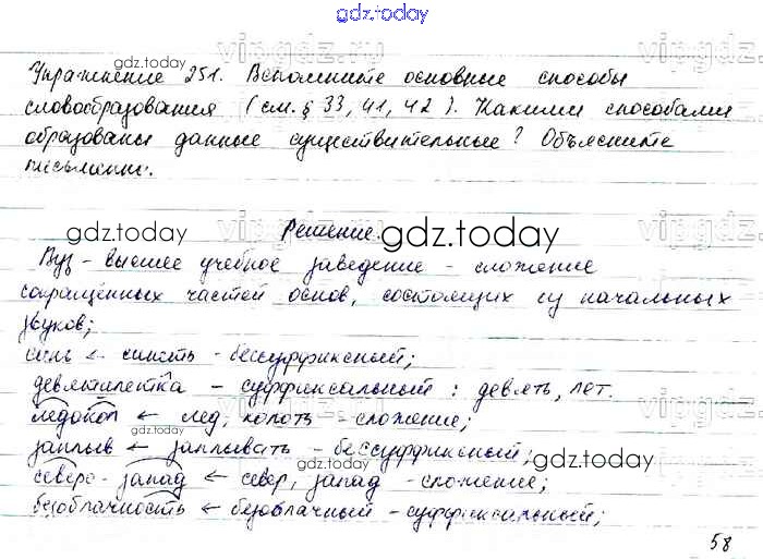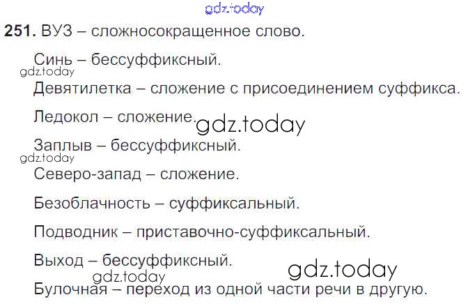 На страницах сайта gdz.today вы найдете учебный и вспомогательный материал, направленный на улучшения знаний школьной программы. ГДЗ - онлайн мир знаний Упражнения Часть 1 251 Учебнику по Русскому языку для 6 класса Баранов, Ладыженская Просвещение, Просвещение 2015, 2022